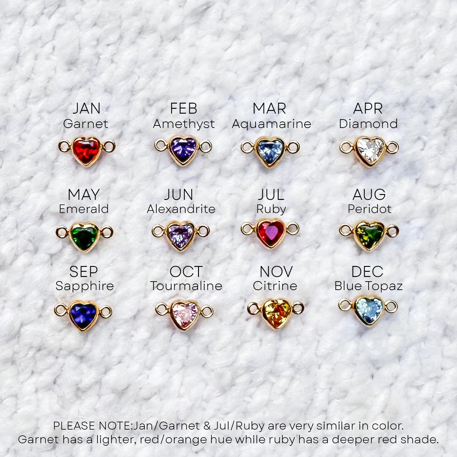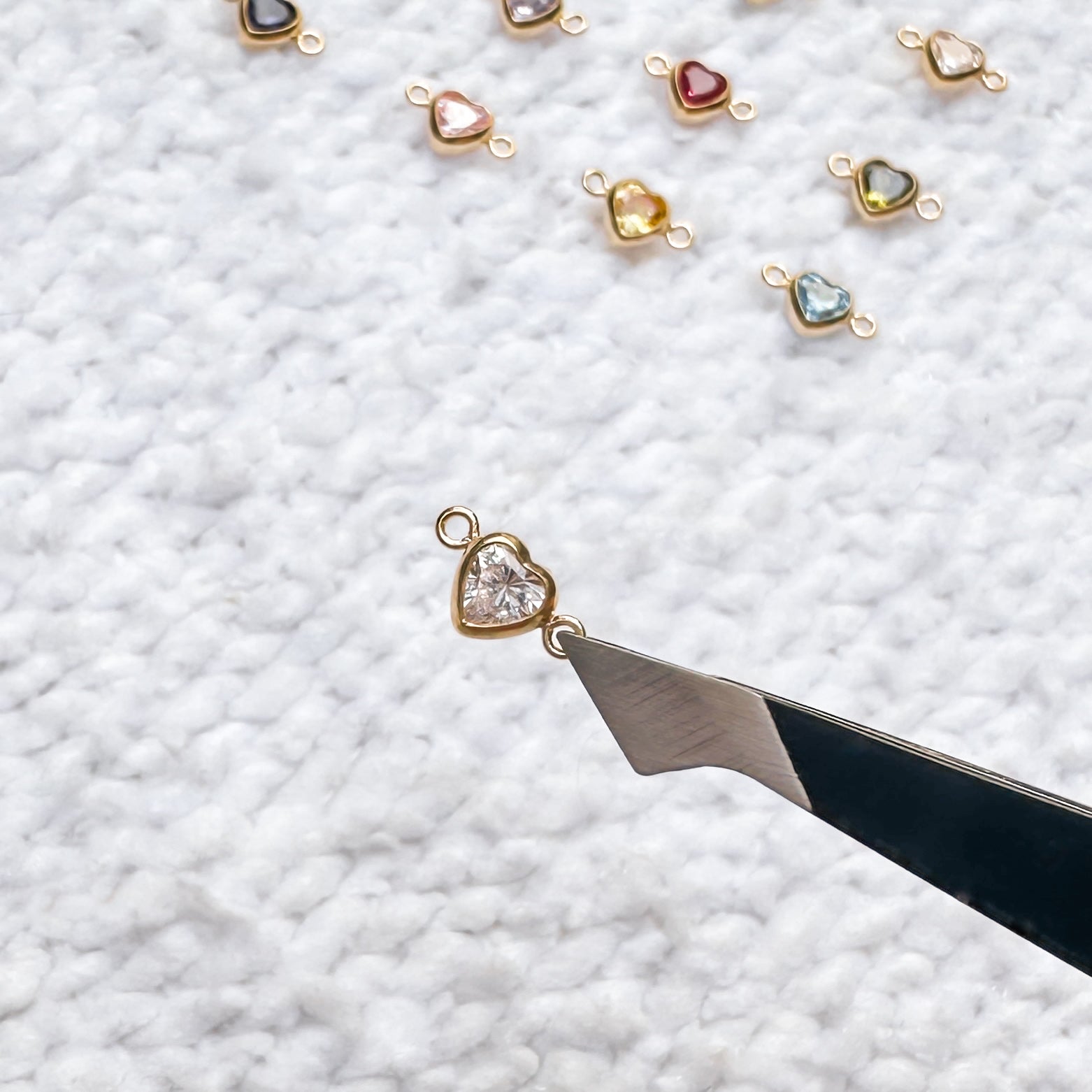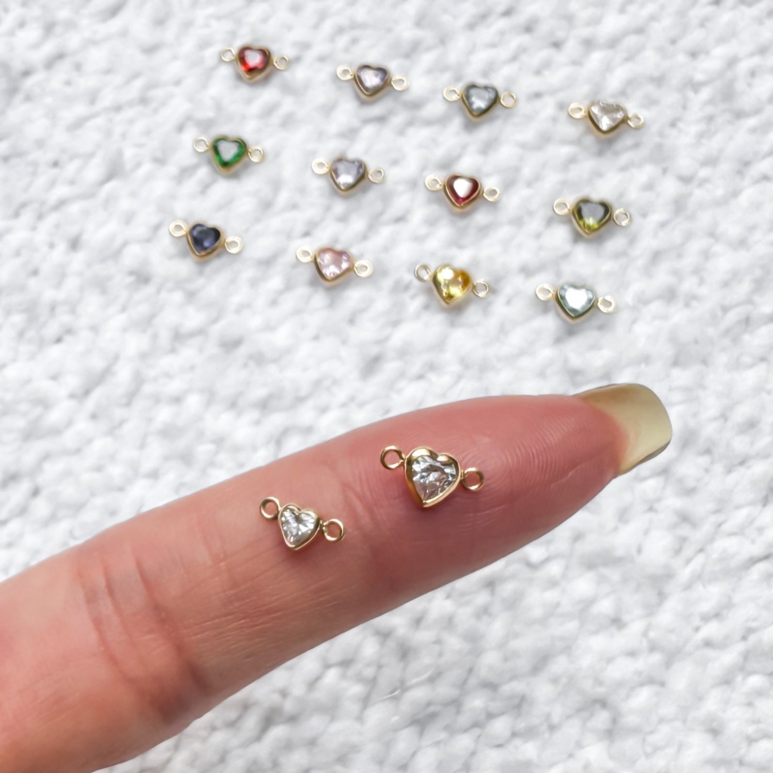 Personalize your permanent jewelry with our elegant heart shaped birthstone connectors. Each piece features a beautifully detailed zircon stone, perfect for adding a sparkle to bracelets, anklets, and necklaces. Crafted from high-quality 14k gold filled and sterling silver materials, these connectors allow for a meaningful, customized design that reflects the wearer’s birth month or favorite color.